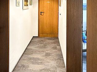 Flur zwischen Aufenthalts- & Schlafbereich – dient zusätzlich der Verbindung von Privatwohnung und Garage, wird bei Vermietung in der Regel jedoch nicht benutzt.