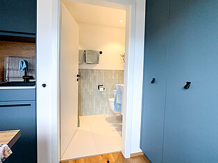 Die 2024 umgebauten Räume waren bis 2003 die von Peter betriebene Tierarztpraxis. Im Parterre gelegen bietet das gemütliche Appartement (32 m²) barrierefreien Zugang zum gesamten Wohnbereich.