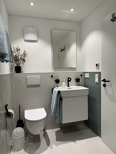 Ausgestattet mit bodentiefer Dusche für barrierefreie Nutzung